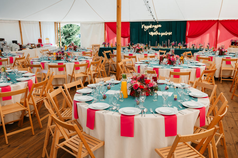 Arkadia Maciejówka to najnowsza przestrzeń na mapie Mazowsza i jedno z tych miejsc, które zostają w pamięci na długo. Wiekowy sad jabłoni, czereśni i grusz o pow. 2 hektarów, zasadzony przed laty przez dziadków obecnych gospodarzy, dziś staje się naturalną scenografią wyjątkowych ceremonii ślubnych, wesel i przyjęć, zaledwie 30 km od granicy Warszawy. Otoczona drzewami przestrzeń z eleganckim namiotem eventowym łączy autentyczność natury z komfortem nowoczesnej organizacji. Do niezwykłego namiotu prowadzi długa, magiczna aleja wśród grusz, a drewniany parkiet namiotu płynnie łączy się z tarasem zewnętrznym i strefą chill z leżakami pomiędzy drzewami czereśni.